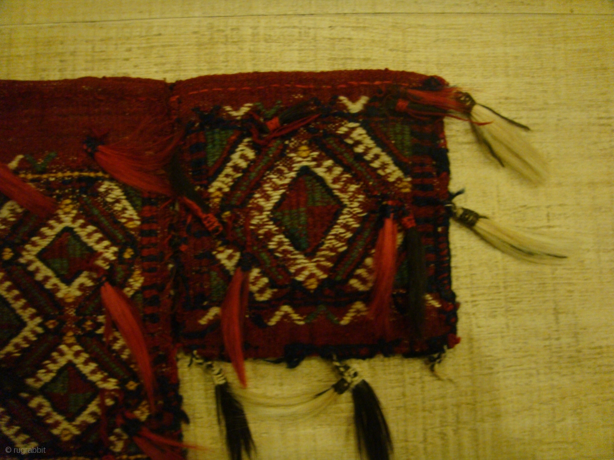 Rare, Early 20th Century Yamoud 3-Piece "Spoon Bag" (Qashoqdan) with Decorative Horsehair Tassels on Front.