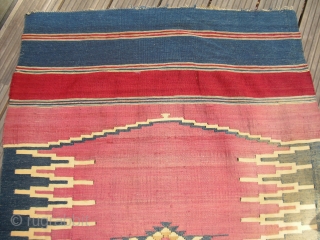 Syrian "Aleppo" Kelim - ca 1900 - the colours are faded by the sun sadly on one side very much, used as a door or window curtain very often - kilim has been cleaned reasently - very classical drawing and colours (size: 280 x 87 cm)