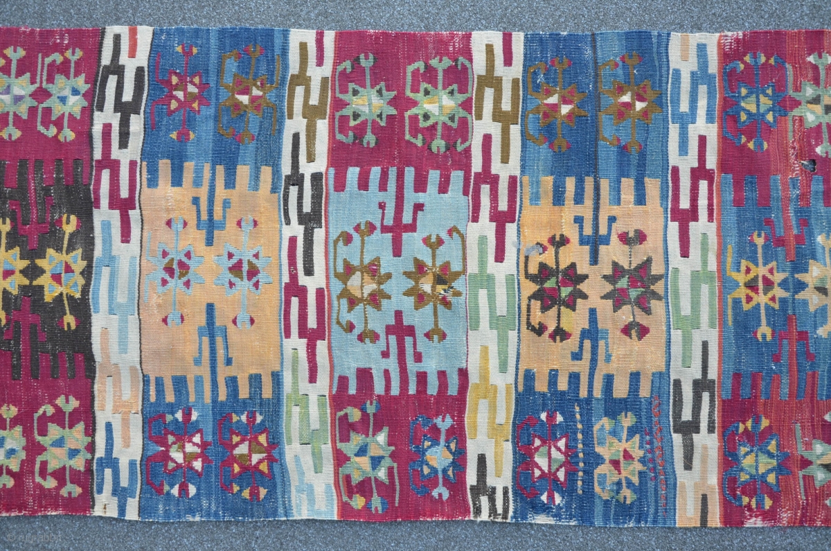 Anatolian Kilim, 307 x 73 cm, brilliant colors, ca.200 years old.
