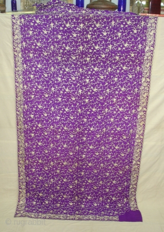 Chakla-Chakli no Garo, Parsi Gara Sari From Surat Gujarat India.This kind of Sari's were embroidered by Chinese artisans in the town of Surat in Gujarat for the Parsi women of that region.The Parsi's are a Zoroastrian community in the Indian subcontinent.They are non Muslim Persians that were driven away from Iran when it became Islamic.Its size is 117cmX520cm.Condition is Good(DSC05198 New).