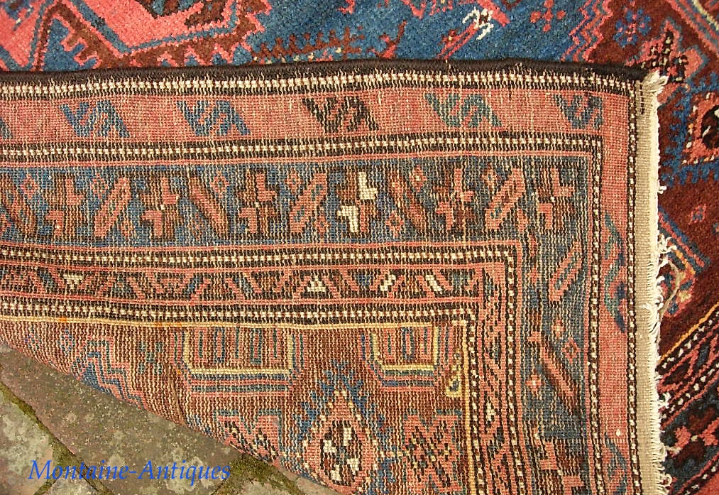 Hamadan Runner-- 3 ft 6 in x 9 ft 9 in. Perhap Kolyai with all these Kurdish motifs. Very pretty with soft blue, salmon and rust. Condition is good-- low, even, no foundation showing. $35 for ups shipping to lower 48.