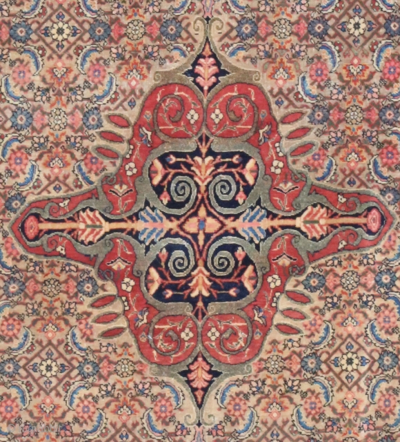 Antique Bijar on wool foundation, just the very finest of the type i encountered in 40 years! 138 x 212 cm High pile in general. Reinforced foundation to center. Wear to last couple of cm to sides, and leather side backing. Re-woven end fringes with cotton (still can be replaced as original). Superb palette of pastel colours