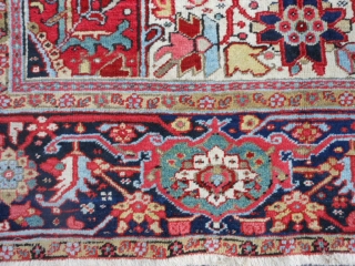 Persian Heriz, circa 1920, 9-9 x 12-7 (2.97 x 3.84), very good condition, original edges and ends, ends have been overcast, rug is clean, great size - small 10 x 13, good colors, few small wear areas.