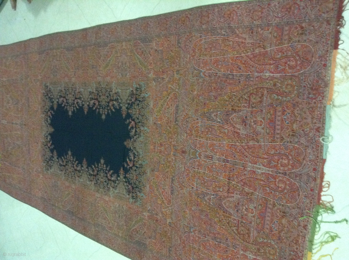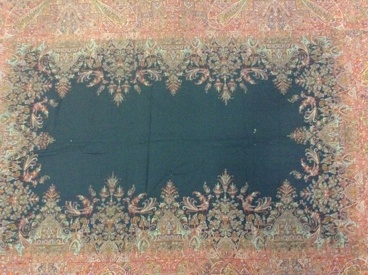 Rare antique paisley shawl with full figural design of peacock and architectural design size 11.5 x 5.5