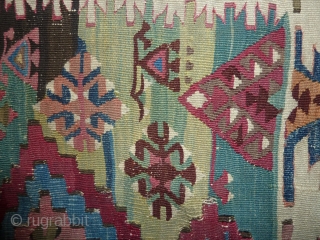 Lovely south east anatolian kilim (half of), nice colours, complete in width but roughly half the length, 189 x 168 cm, 5.9 x 5.5 ft.