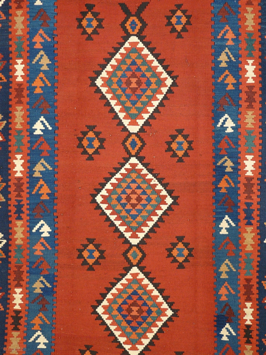 # 799 Classical Shahsavan kilim with the traditional long format, 145/402 cm, Northwest Persia, early 20th century, very good condition and natural colors, wonderful madder red in the field, calm and ruminant emanation, well washed, ready to display.