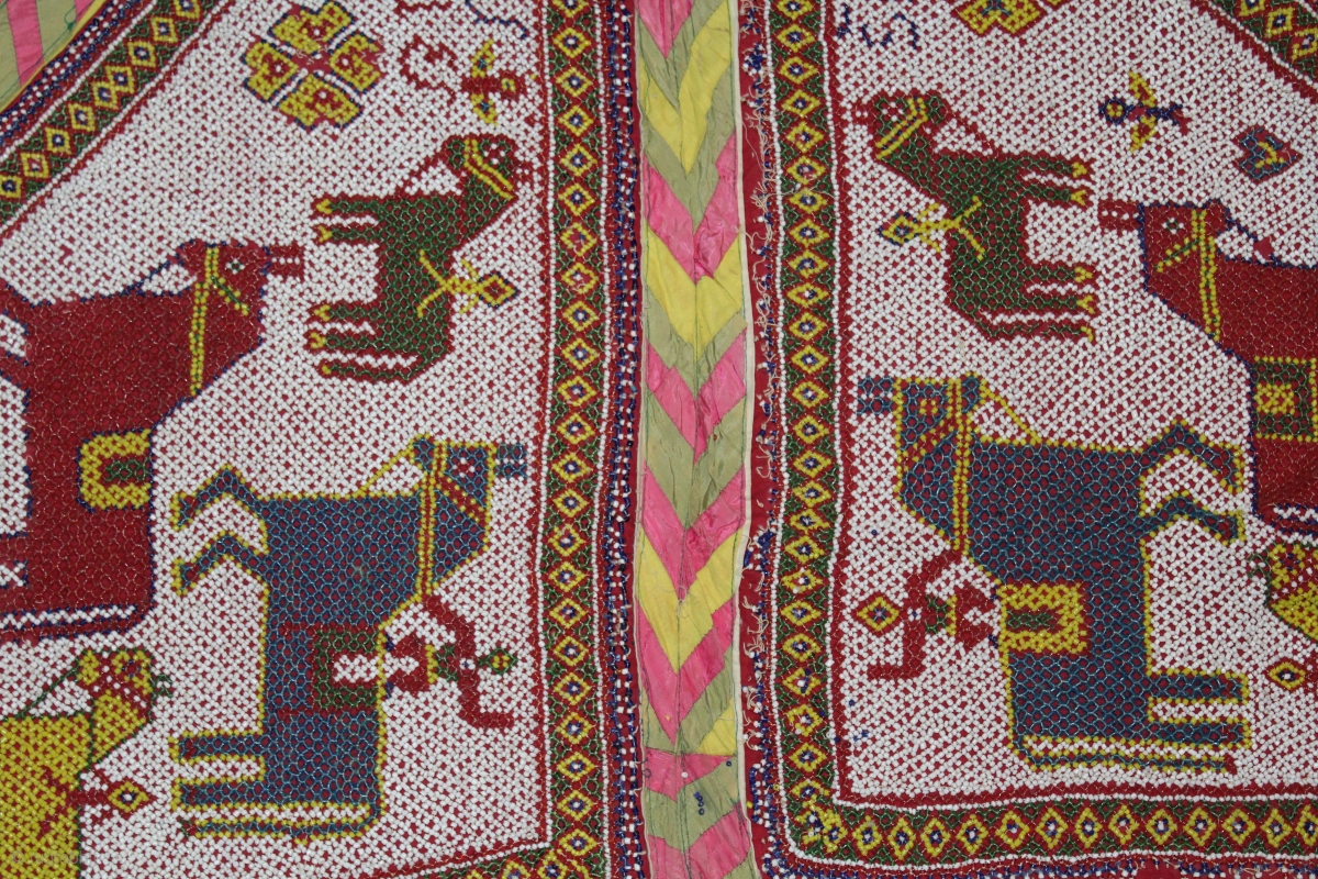 Horse Decoration Italian Beads Hand Stitch Work Base Cotton Ground From Saurashtra Gujarat India.Very Rare Piece.(DSC00580).