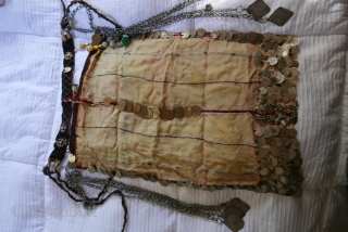 Antique 'niqab' (tribal lady's face covering), from Palestine. Have two more, not quite as good a condition as this. and a Bedouin lady's vanity mirror, not quite as old ($75.00). both are sold...thank you.