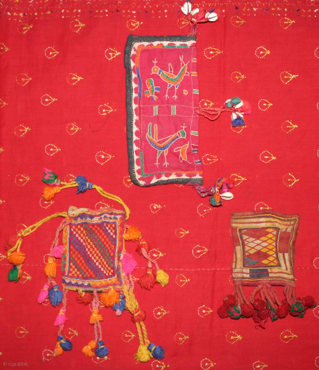 Banjara Embroidery Neem twig pouch/Coin Purse/Toothbrush holder from Karnataka India.Cotton on Cotton,3 Pieces Neem twig pouch/Coin Purse/Toothbrush holder.Perfect Conditions.(DSC00700).