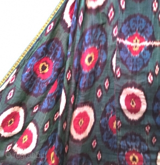 19th cent Uzbek Atlas Ikat Chapan, silk wrap/ silk weft (silk on silk). Excellent veg dyes colours and design. Reasonable price.