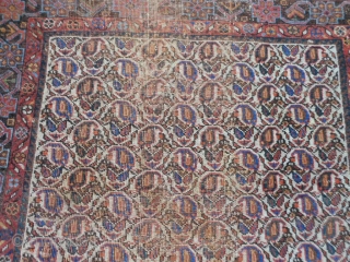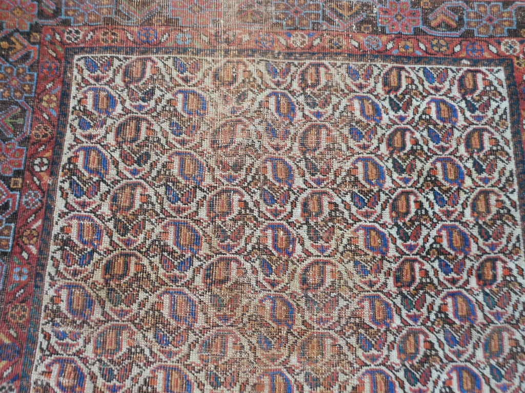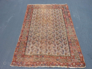 Persian Afshar, 4 x 5-9 (1.22 x 1.75), late 19th century, Botehs, worn, browns oxidized, small hole, i washed this piece, beautiful colors, plus shipping.