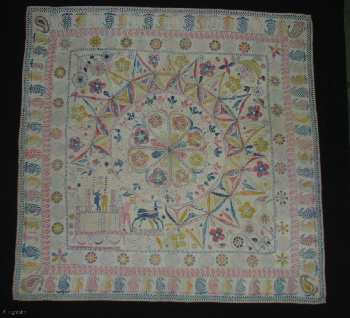 Kantha cotton Plain weave with cotton embroidered Kantha Probably From Faridpur District,East Bengal(Bangladesh)region.India.C.1900.Its size is 89cmX89cm(DSC00200 New).