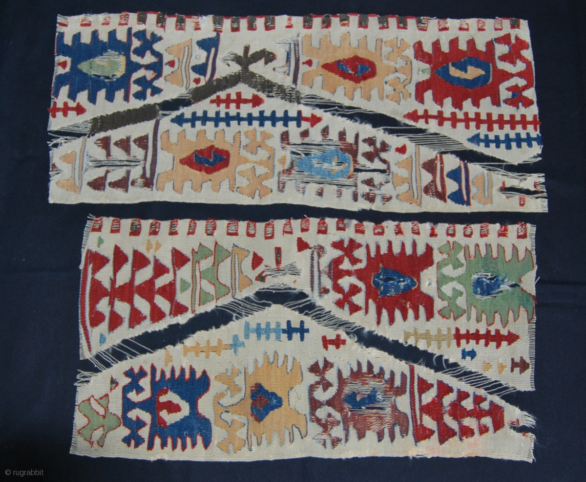 Two Konya/Aksaray kilim fragments. Cm 31x72/32x63. 2nd half 19th c. Great colors. Get one or both. Not expensive.