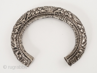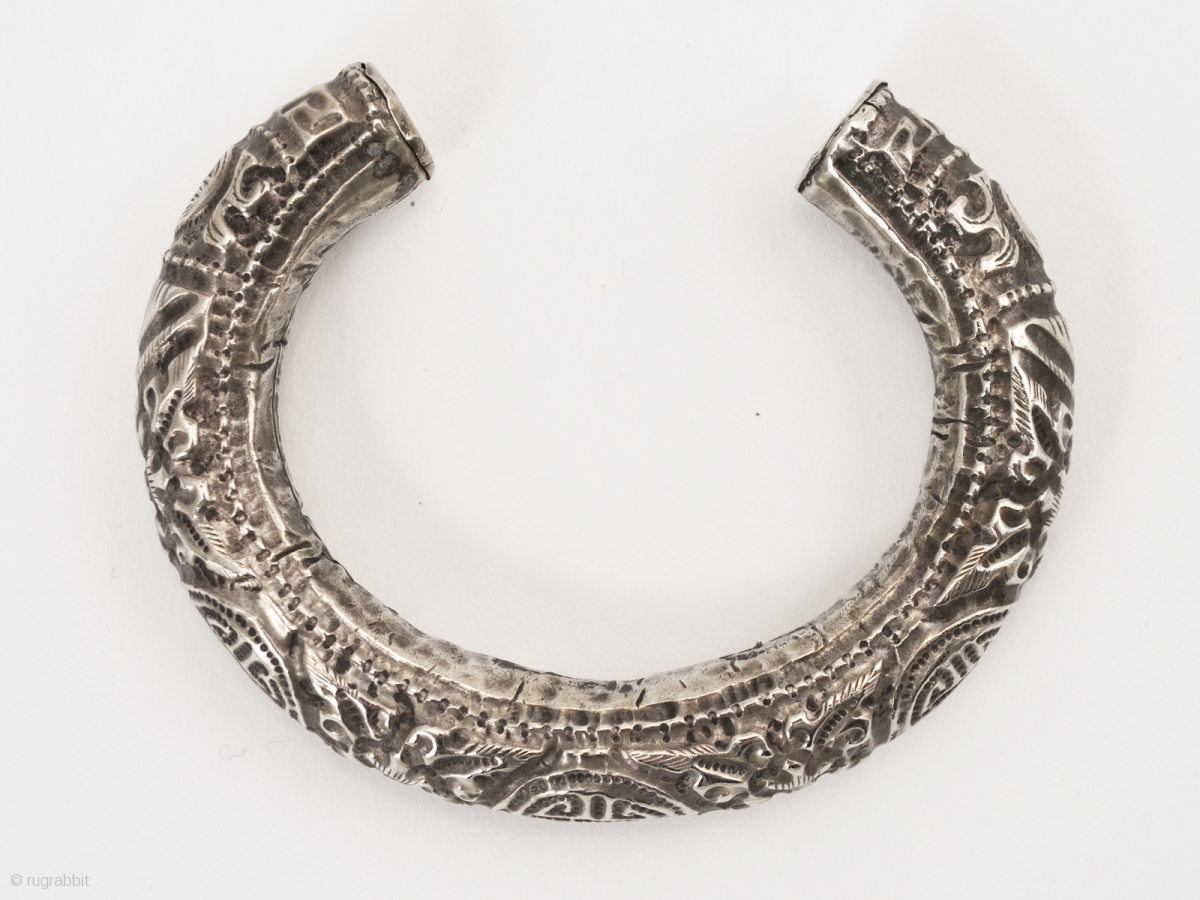This chased silver bracelet is hollow, with grains of sand inside. Total weight is 44 grams.