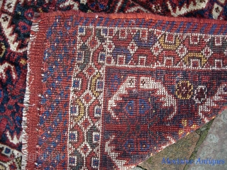 Some Khamsa motifs but I'm not sure. Let's call it south Persia. Long pile with floppy texture. Very good condition with small imperfections. $20 ups to Lower 48