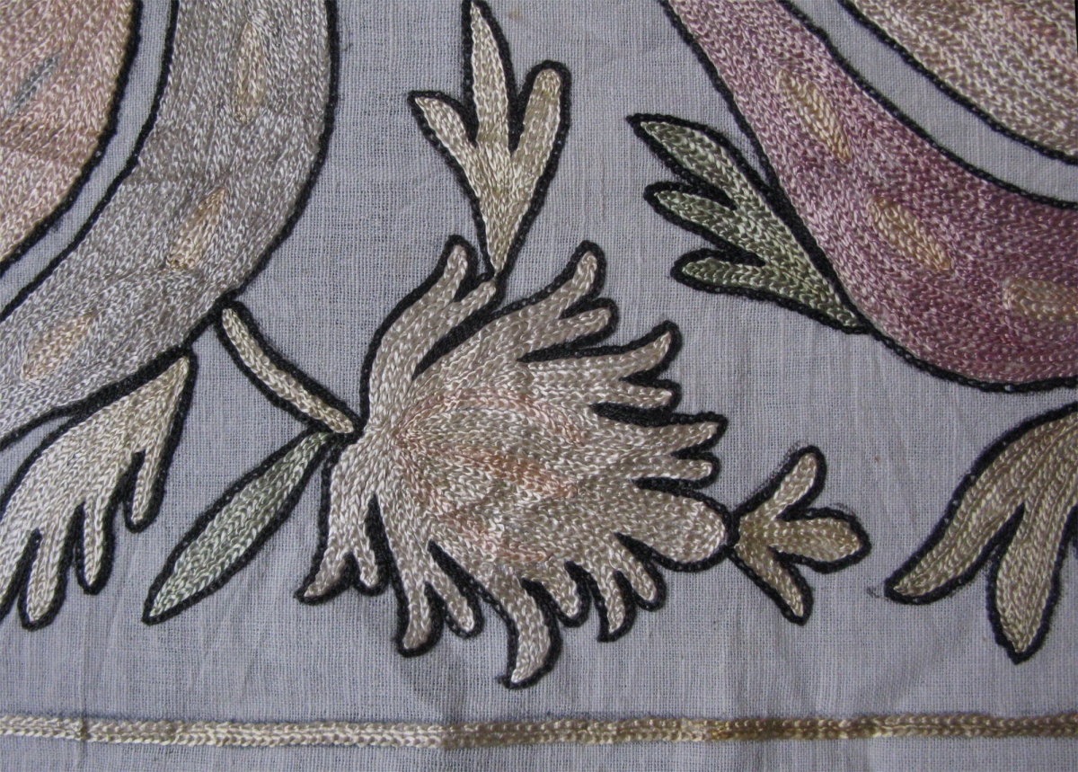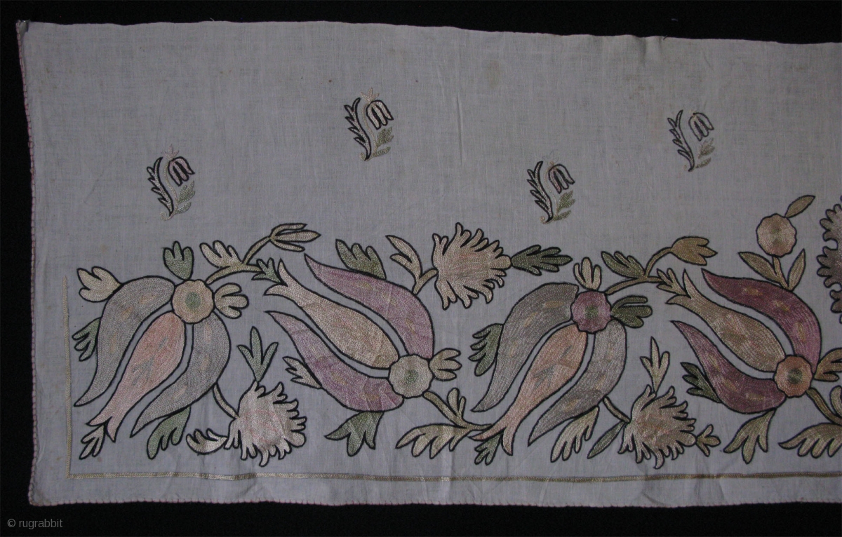 Ottomasn Textile. Silk fine chain stitch embroidery. Little wear in center blossoming flower. Circa 1900's. Size: 19" x 70" - 48cm x 177cm.