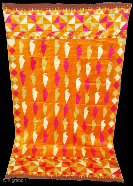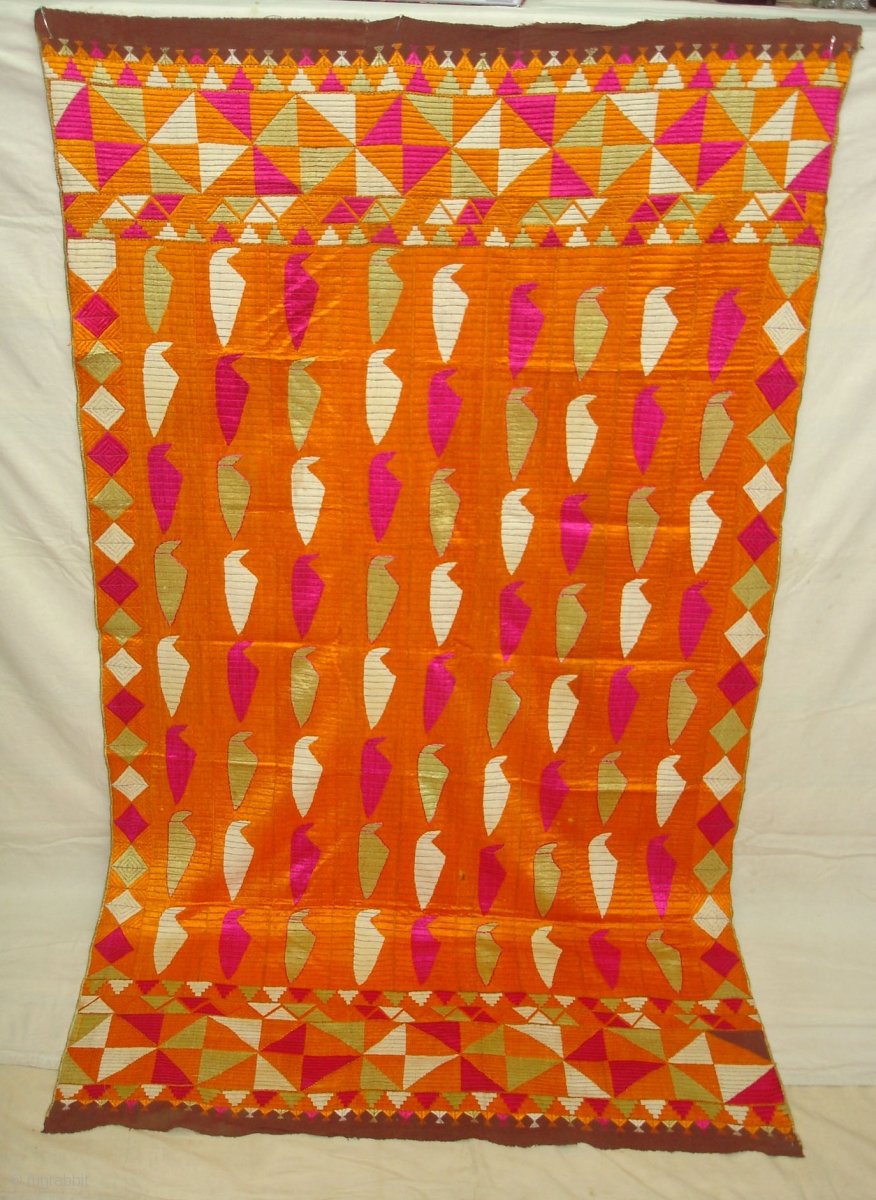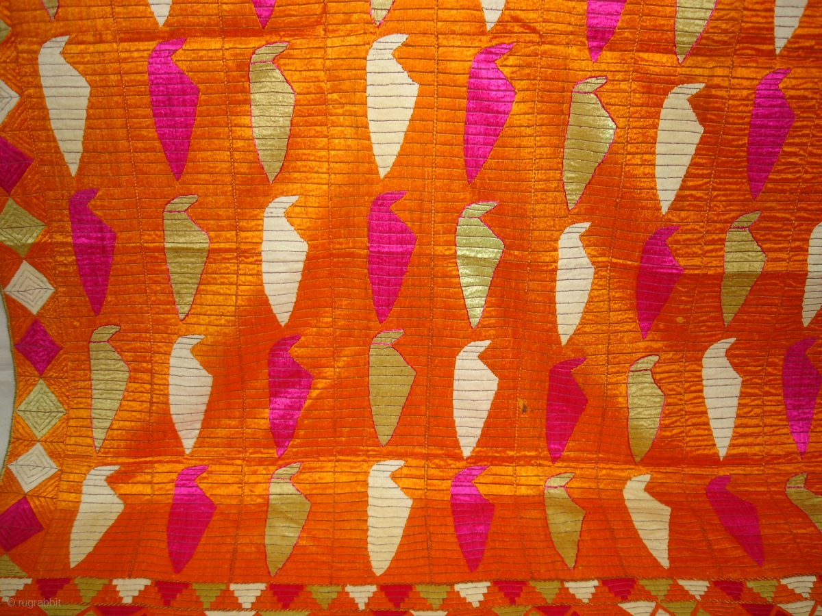 Phulkari From East(India)Punjab.India.One of the Rare Design Indian Phulkari.Known as Tota(Parrot bird)Bagh. Its size is 130cmX220cm (dsc04588 New).