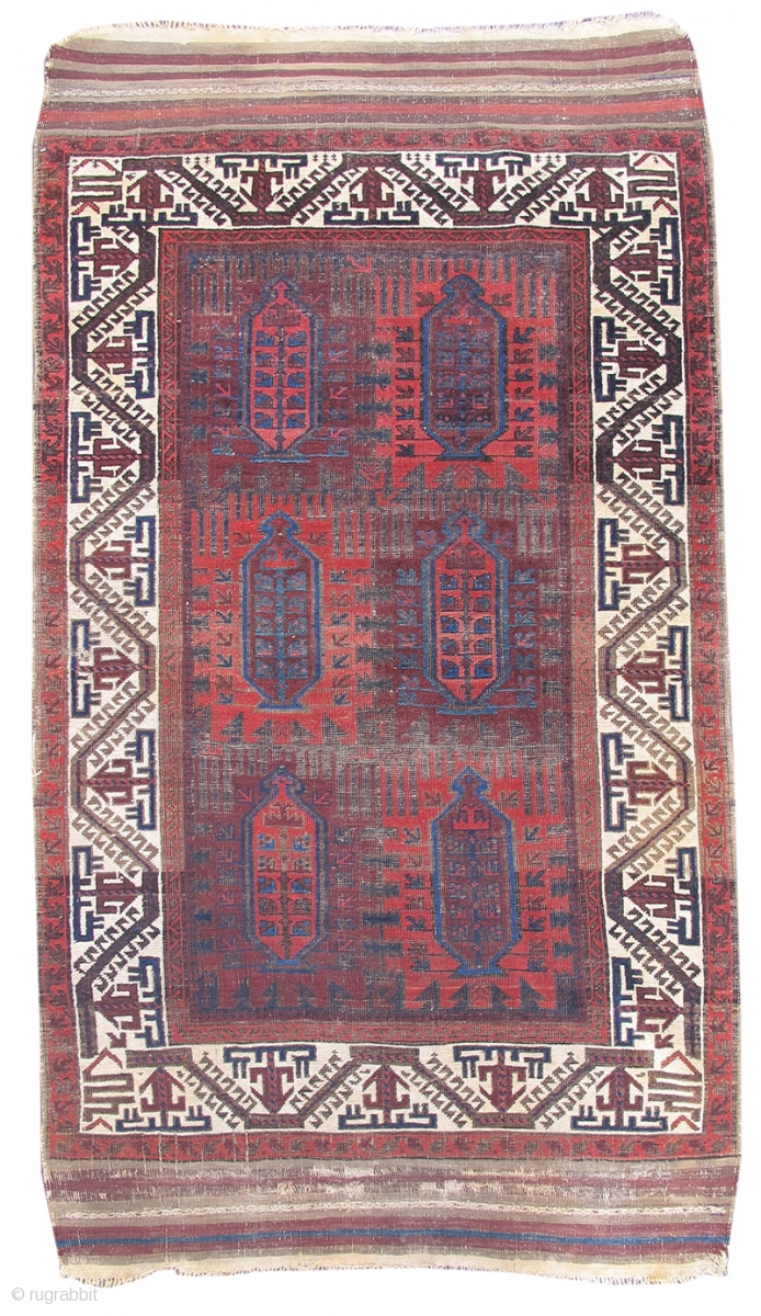 Areas of wear primarily in oxidized browns. Small hole, distressed area on selvedge and on one kilim end.