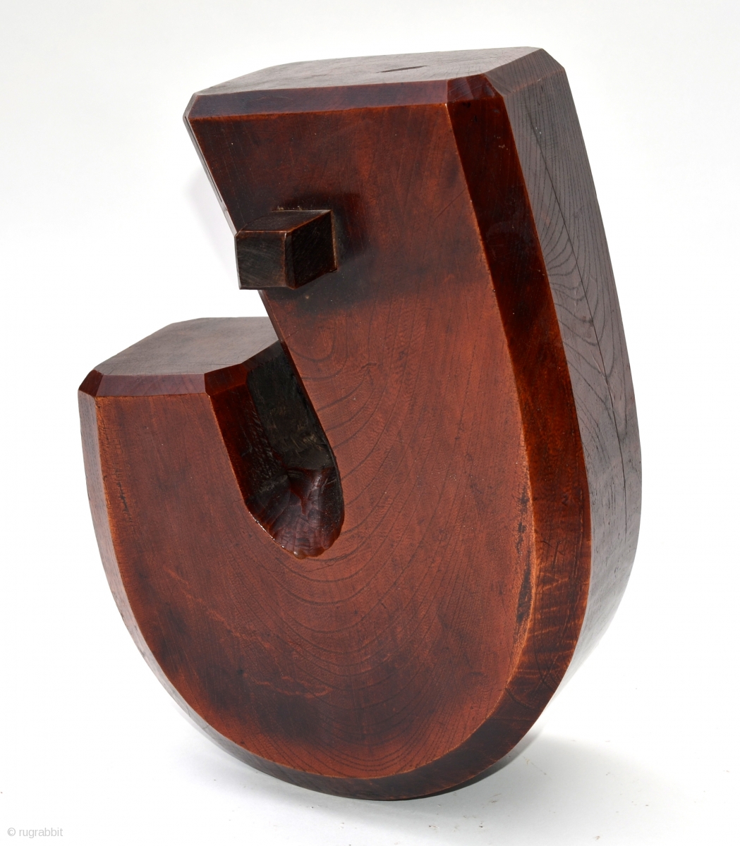 Antique Japanese large jizai "j" hearth hook, carved of a single piece of keyaki (elm) wood, sculptural with faceted angles, beautiful grain and deep patina. The hook was a symbol of a families prosperity and stability and would hang from the ceiling beam to suspend a kettle or pot over a sunken fire pit.