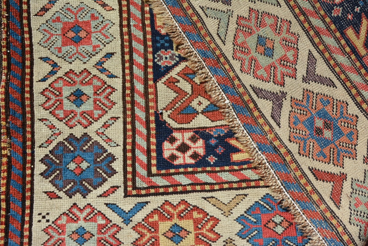Caucasian Akstafa Runner circa 1860, size is 252 x 98 cm, quite rare not much examples seen today. fair condition had been repiled some areas but last owner did good job and they kept the rug very safe.