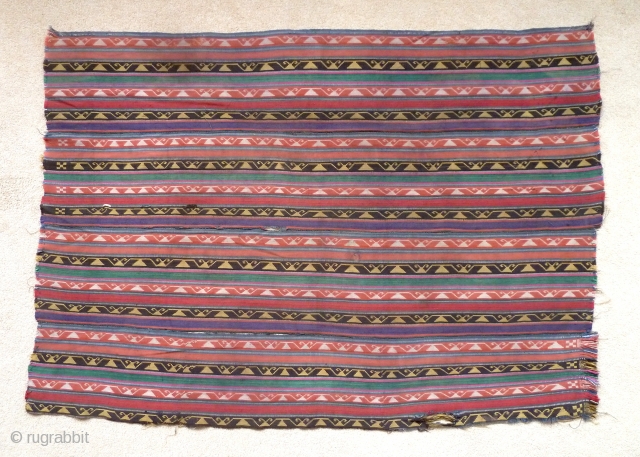 a silk jajim from Sheki, Azerbaijan, c. 1900 or early 20th century. Made up of narrow strips sown together. 128 x 88cm