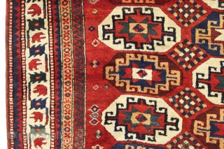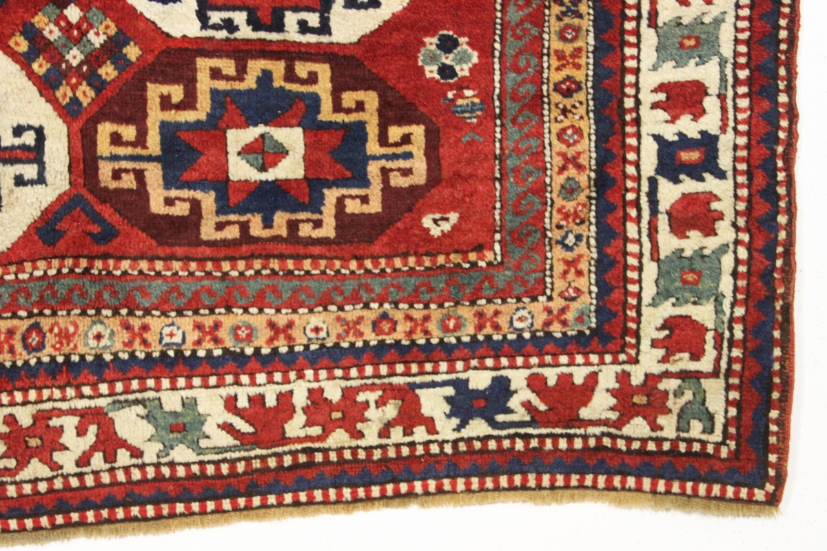 Antique moghan Kazak rug in great condition with thick high pile and beautiful natural colors. Clean with lustrous wool and lovely saturated colors. Ready for the discerning collector. Needs nothing. Good age, ca. 1875 or earlier. 4'9" x 6'9"