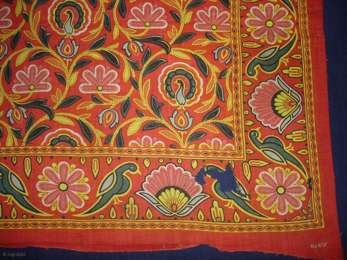 Manchester Print Pichwai Of Morakuti(Dancing Peacock)From Manchester England made for Indian Market. India.Roller Printed on Cotton.its size is 60cmX71cm(DSC00414 New).