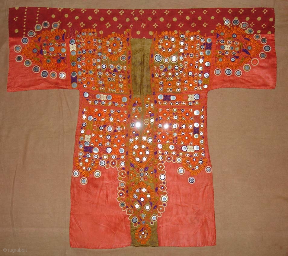Embroidered Blouse-Front(Gaj)From Nindo Shehr,Sindh Provision of Pakistan, Pakistan.Red silk lined with cotton,silk embroidery with mirrors(DSC04157).