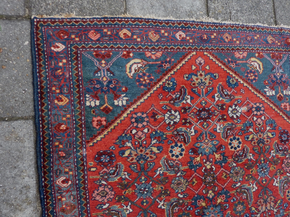 Finely woven Senneh small rug 147 x 105 cm., 4' 10" x 3' 5". Very good condition and pile. Just one tiny spot of wear ( last pict. ). All good dyes and clean. Endings need securing.