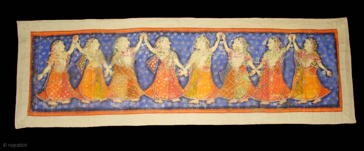 Pichwai of Gopies From Kotah Rajasthan India.Its Size is 30cm x95cm.Early and Rare Subject of Pichwai(DSC03027 New).
