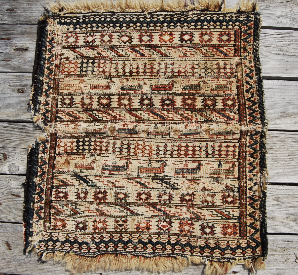 18 animal Bakhtiari bag face. Cm 46x48 ca. a small zoo. Have it mounted and framed, you will have an antique, original, tribal item. More pics & infos on rq.