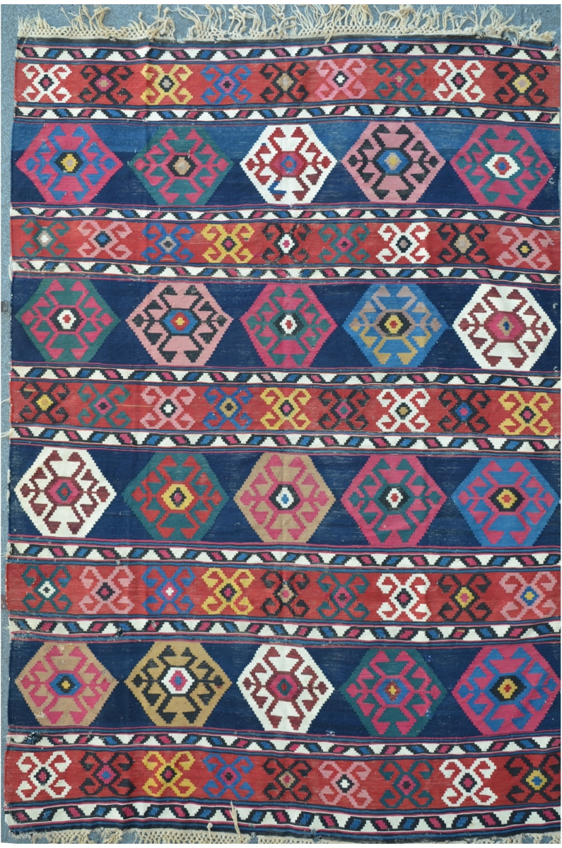 Shahsavan Kilim, 296 x 198 cm, there are some old repairs and little damages on the sides. a bright and and well composed example of this type.