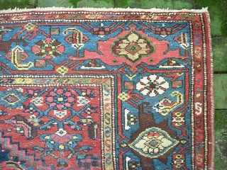 Hamadan. 4 ft 3 x 6 ft 5. West Persian Village rug with white anchor medallion and turtle border. We just posted a whole slug of fresh stuff. Check it out @ http://www.montaine-antiques.com/oriental-rugs/