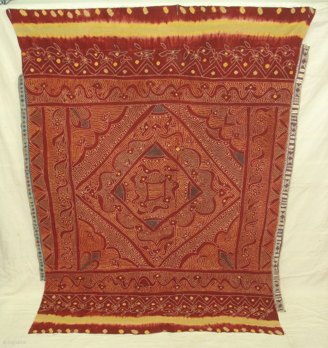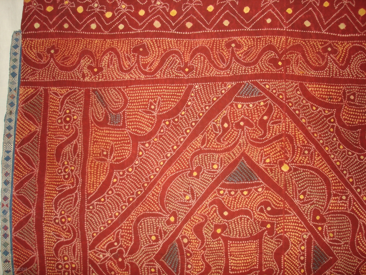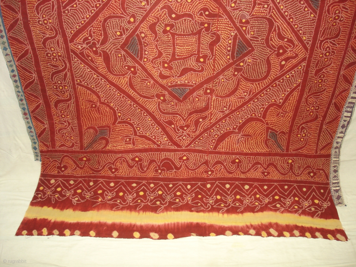 Tie and Dye Odhani From Shekhawati Distric of Rajasthan. India.Its Very rare Single Bandh Tie and Dye.Natural Colours.Its size is 154cmx205cm(DSC03600 New).