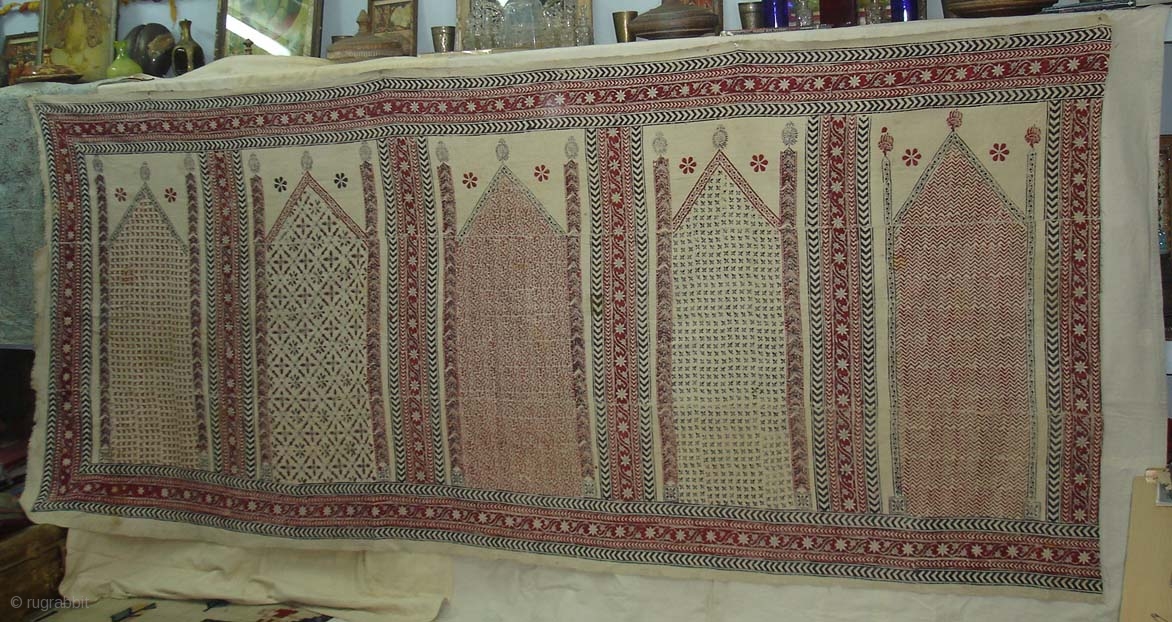 Prayer Arch Kalamkari (Khadi Cotton)with block printing probably from khandesh (Burhanpur-central India)India.Its size is 155cm X360cm.Rare Prayer Arch Kalamkari(DSC07085 New).