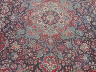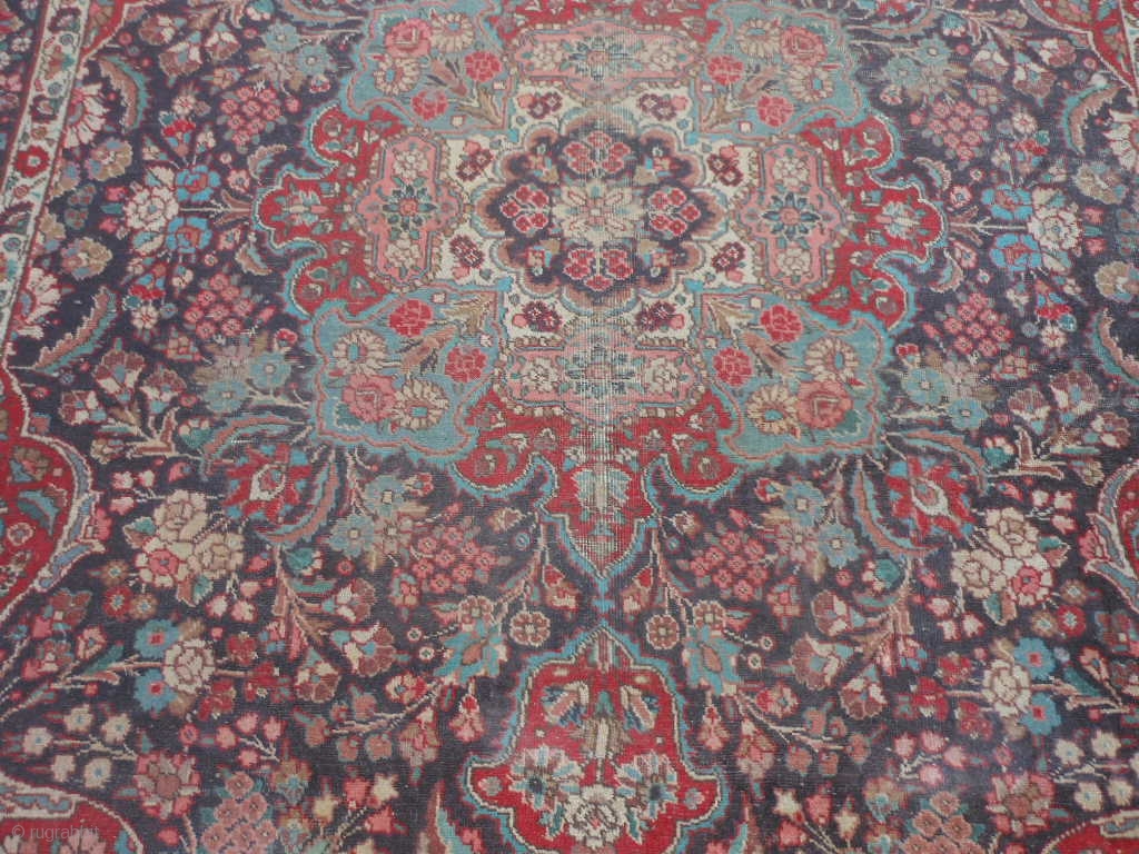 Persian Tabriz, early 20th century, 7-6 x 11-0 (2.29 x 3.35), rug has been washed, no hard spots or rot or smells, minor end loss one end, wear, 2" hole, red dye run, see last two pics for hole and end loss, plus shipping.