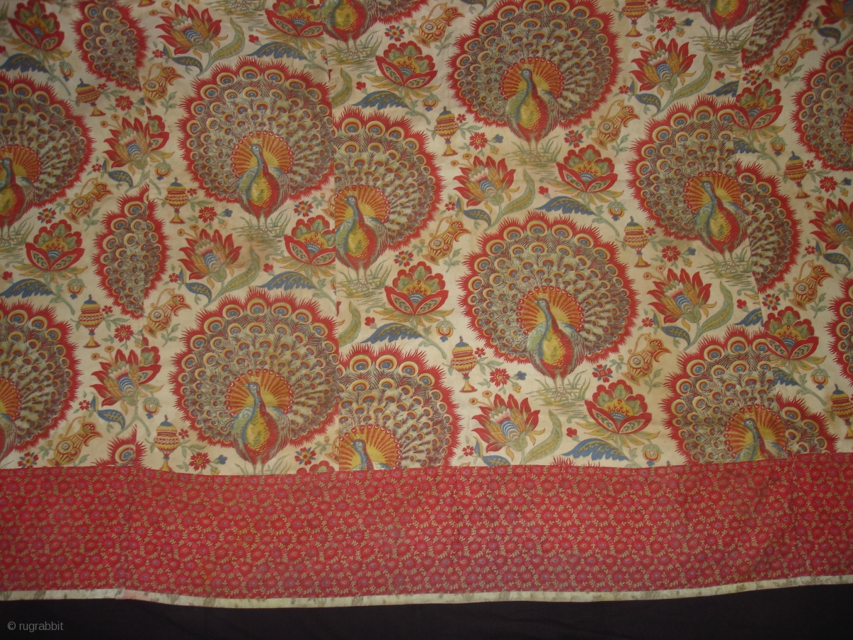 Pichwai of Morakuti or Varshakaal (Rainy Season) Divalgiri Roller-Printed on cotton,Made in Manchester England,for Indian Market.The mating dance of the Peacock Signals the onset of the Monsoons.Its for Temple Hanging in Gujarat India.C.1900.Its size is 164cmX238cm(DSC03435 New).