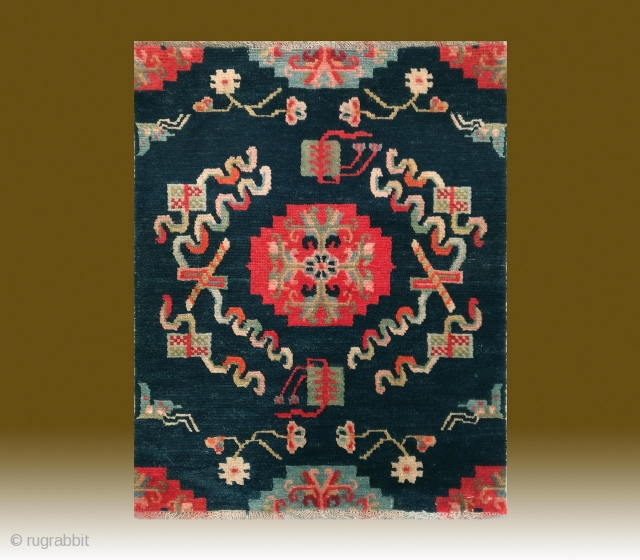 No.CL002 * Tibetan Antique "Eight Treasure Pattern" Rug/Mat. Size:57x72cm(22x28"). Origin: Tibet. Shape: Rectangle.Background Color: Blues. wool/wool.
