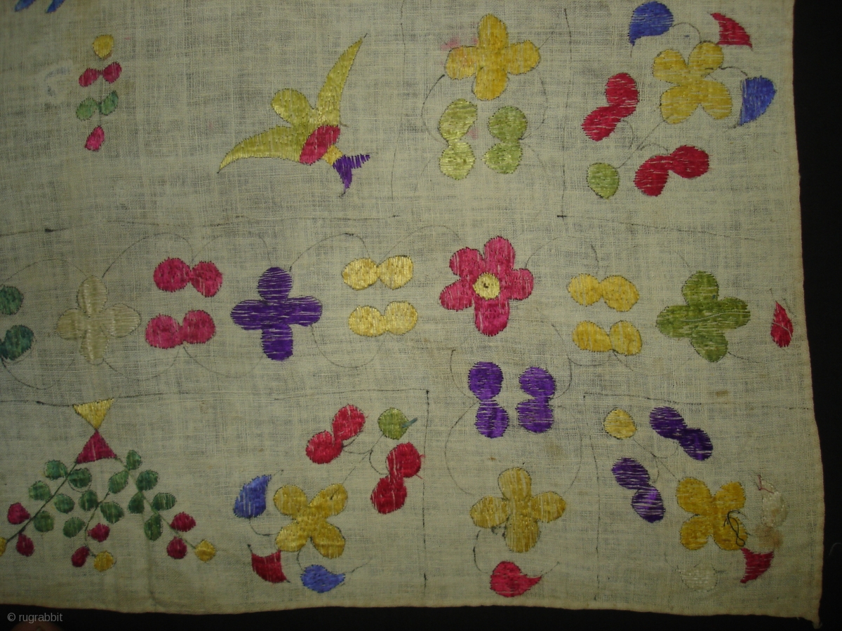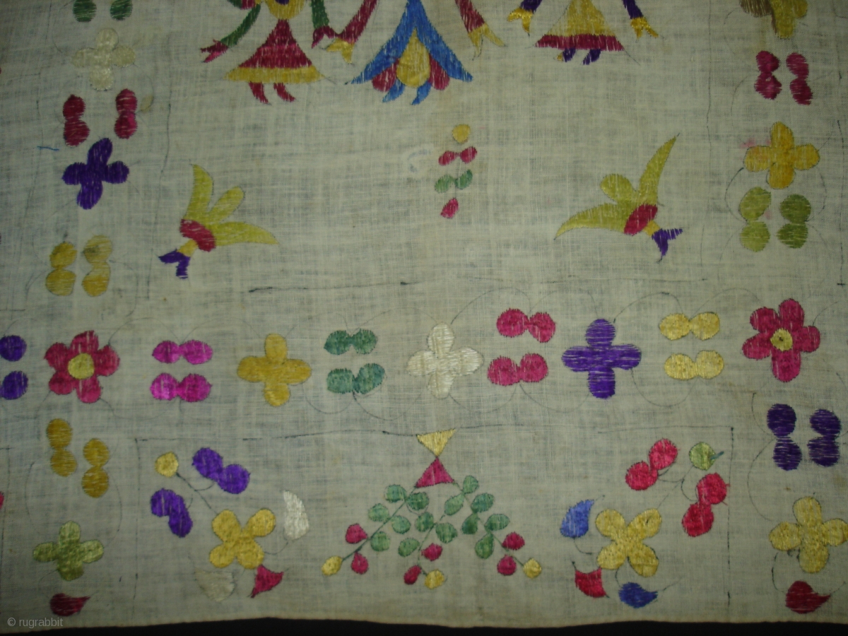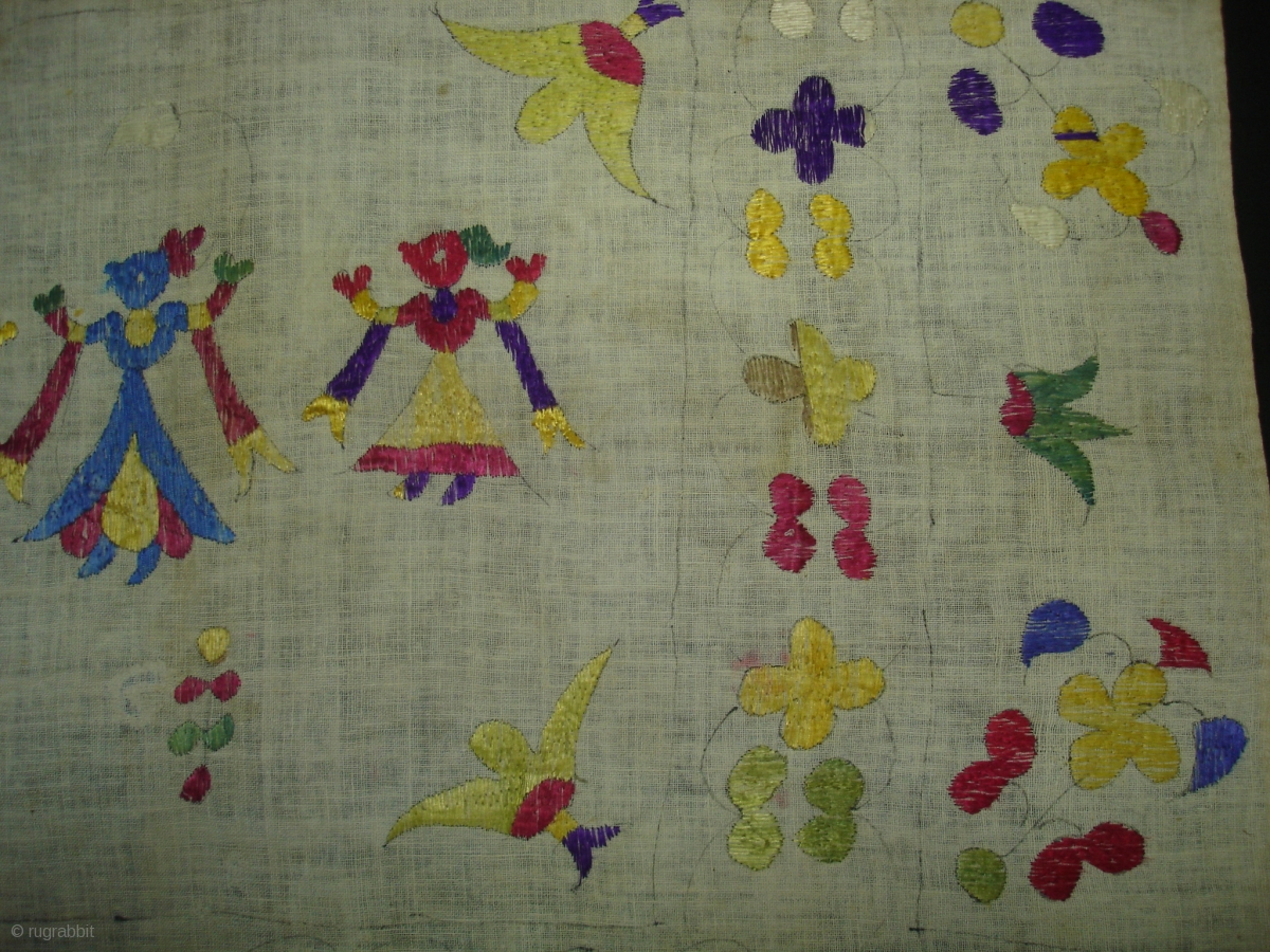 Chamba Rumal From Kangra Himachal Pradesh,India.Circa 1900.Showing the Dance of Krishna and gopis around the blue-bodied god Krishna draped in a yellow dhoti.Its size is 60cmx60cm(DSC03546 New).