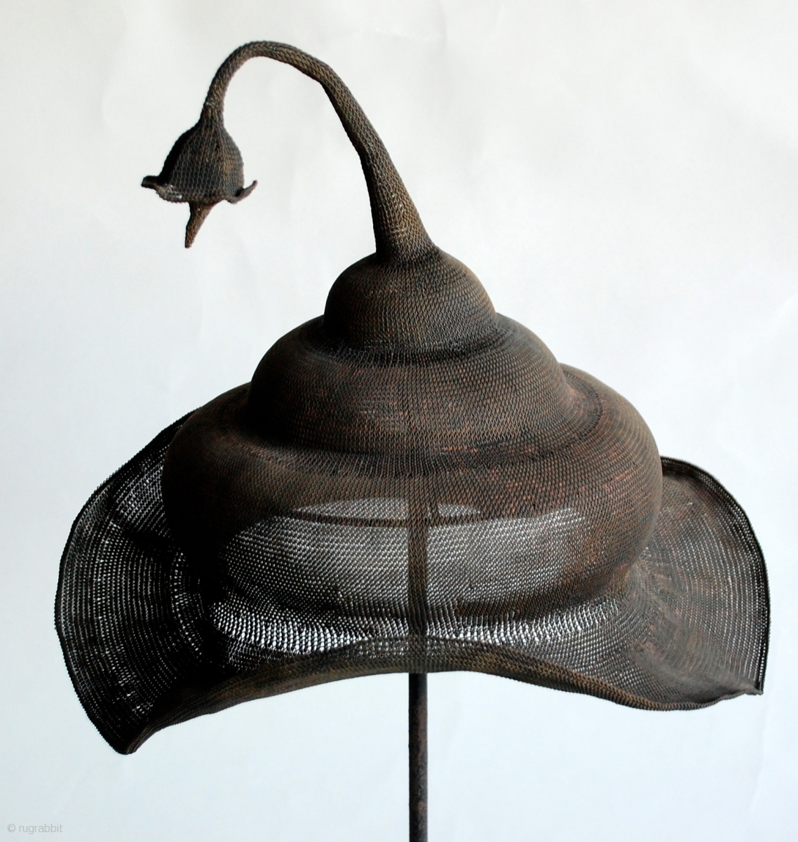 Sumbawa, Indonesia Ceremonial Copper Wire Hat, hand plaited fine copper wire woven hat used in ritual ceremonies.