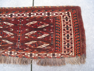 Antique Yomud Yomut Karadashli? Turkoman torba in very good condition. All natural colors. Some local lower pile and bit wear (see picture 8). The lower edge has been shortened but is secured there.