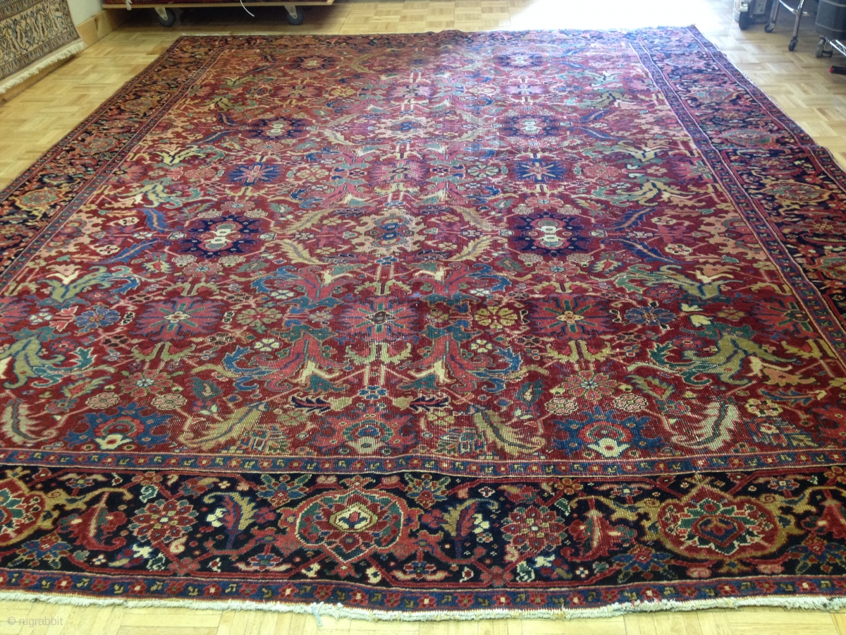 Persian room size Heriz, As is condition. It has been professionally dusted and hand washed. For more information please contact me directly. Contact info: kia@artofpersianrugs.com or 617-484-3363 usa. i really prefer a call so i can speak to you directly. Human interaction is being lost...
