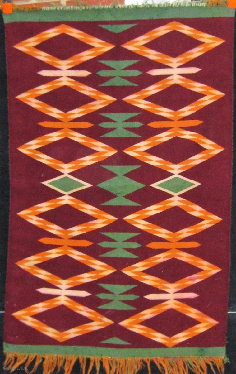 Antique Navajo Germantown, circa 1900, 41" by 26" not including fringe. Some dye run, some of the fringe missing on one end. Please ask for additional photos.