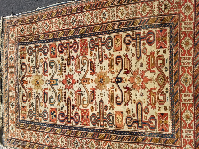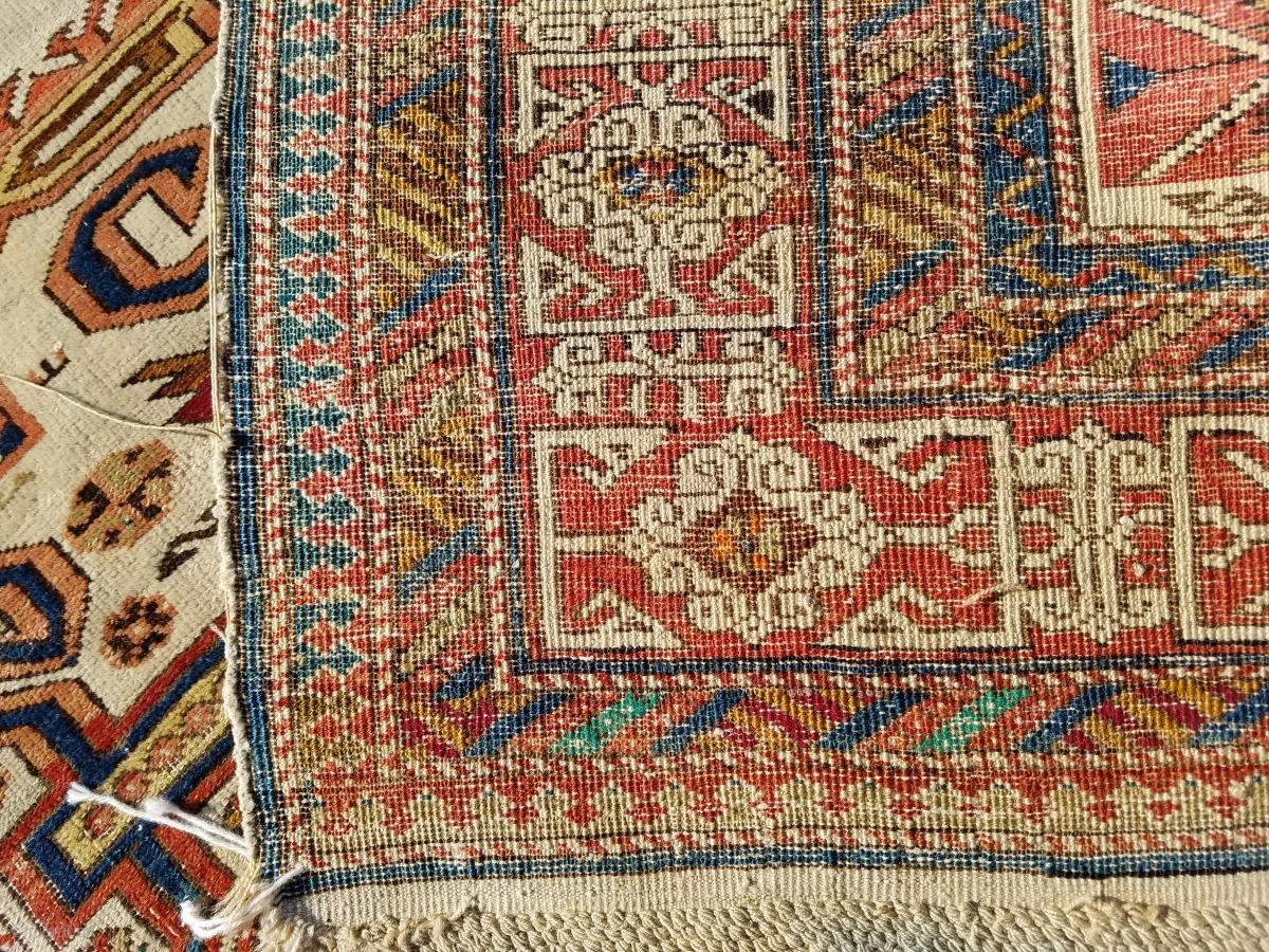 Antique Kuba Perpedil rug 3.10 x5.2. Has a little bit of loss on the sides, but top and bottom are complete.