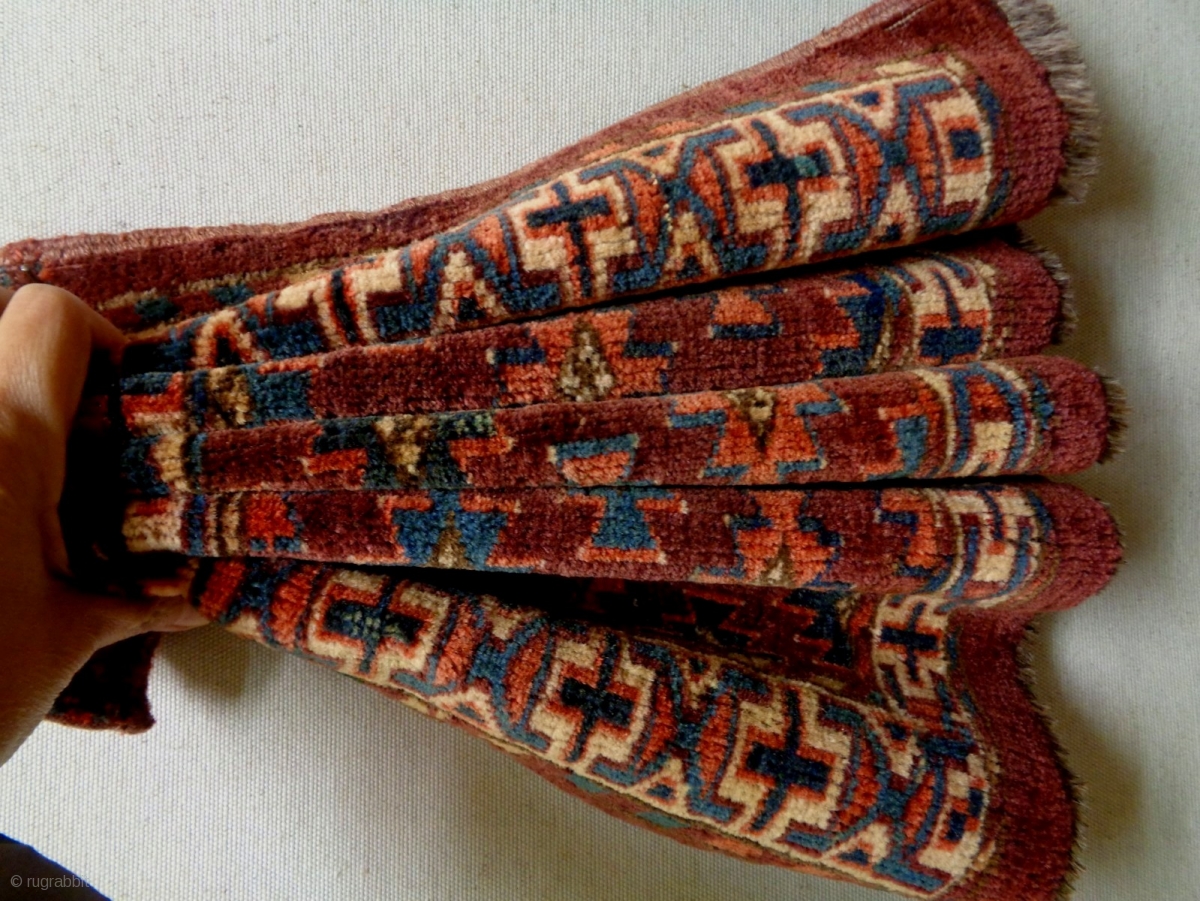 Natural colors (except the weft at the top headend is not natural), made in circa 1910