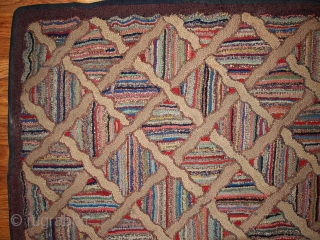 #1b439 Hand made antique American Hooked runner 2.9' x 8.3' ( 88cm x 252cm ) c.1880