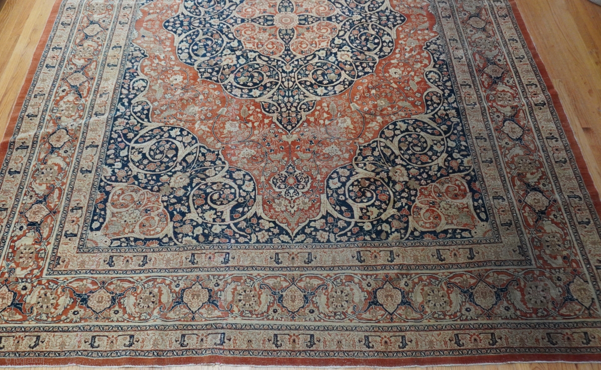 Antique Haji Jalili Tabriz Persian Oriental rug , circa 1840 - 1880's, size: 9' x 13'ft. (275 x 395 cm.), good condition, no repairs, medium to low wool pile, hand washed and cleaned, some minor areas with lower pile, no holes, no tears.