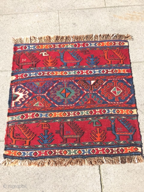a pair of sumakh bag faces size 50x53 cm each. Some synthetic color.