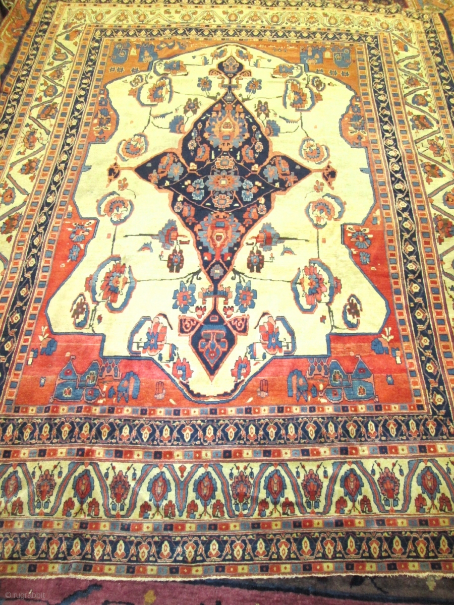 size 9'5''x7'2''. condition great all original with no repair.very soft and lustrous wool. circa 1840s to 1850.
