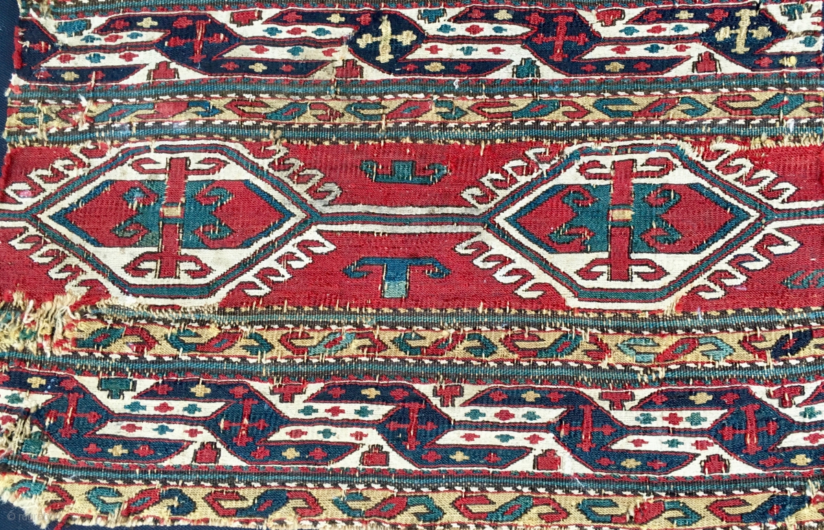 Shahsavan sumack mafrash end panel. Cm 40x52. Datable 1870/1880. Great color, great pattern. Condition issues as you can see from the pics.